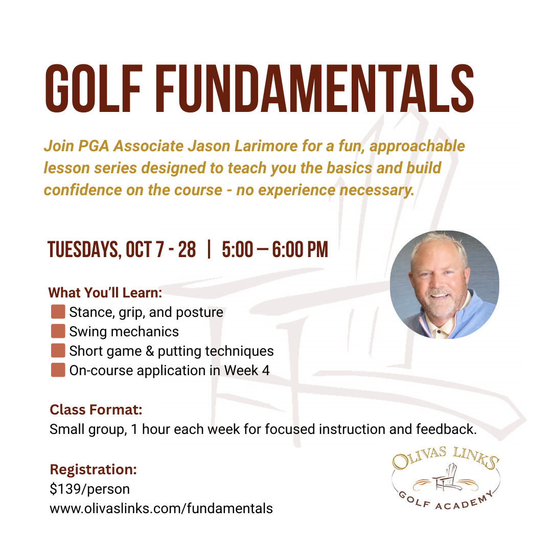 Come learn the fundamentals of golf in a fun environment with PGA Associate, Jason Larimore.
